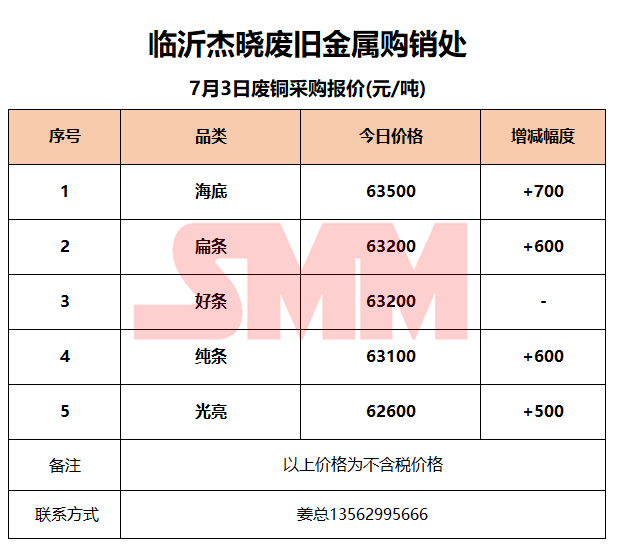 7月3日临沂杰晓 废铜采购报价