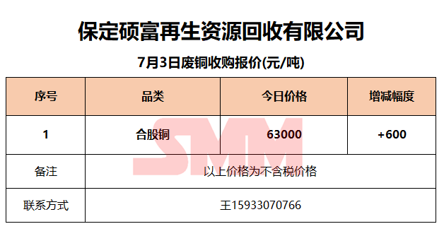 7月3日保定硕富 废铜收购报价