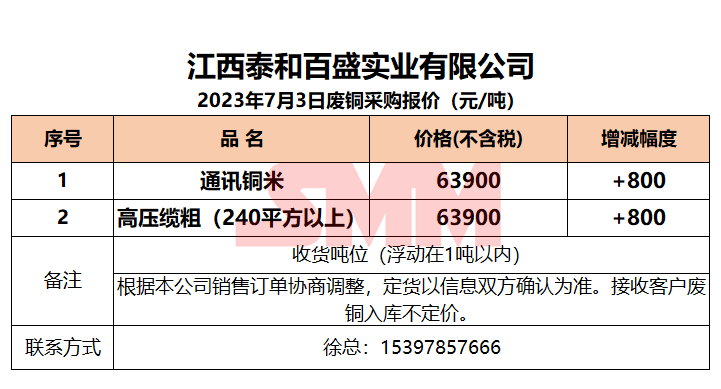 7月3日江西泰和 废铜采购报价