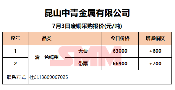 7月3日昆山中青 废铜采购报价