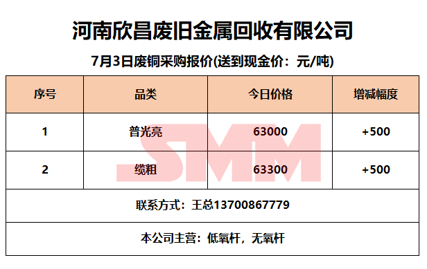 7月3日河南欣昌 废铜采购报价