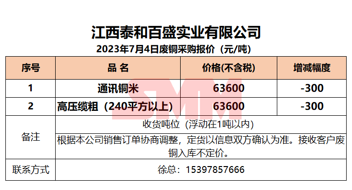7月4日江西泰和 废铜采购报价