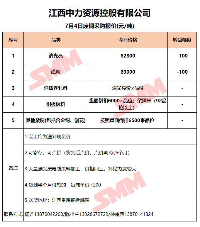 今日江西中力资源,废铜采购报价已更新,有货的朋友欢迎联系我们!