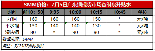 7月5日广东铜现货市场各时段升贴水(第三时段10:15)【SMM价格】