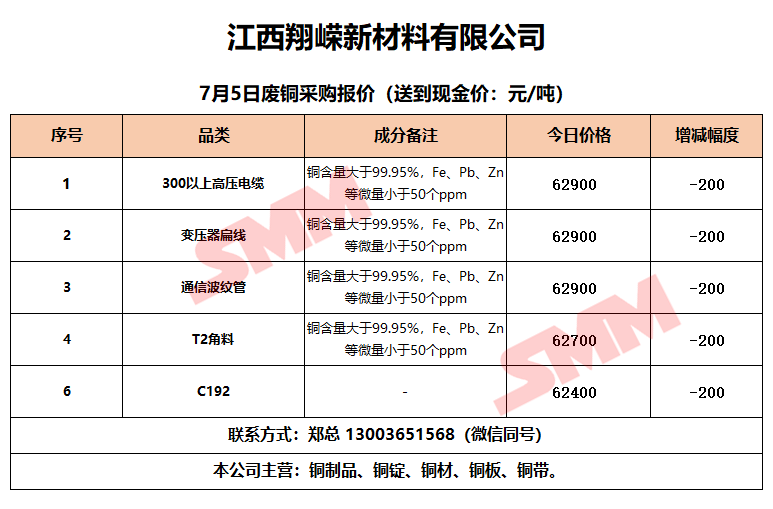 今日江西翔嵘新材料,废铜采购报价已更新,有货的朋友欢迎联系我们!