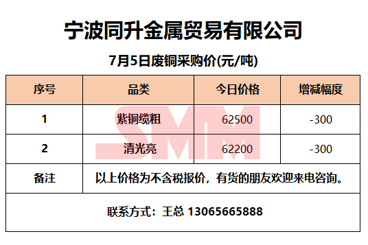 今日宁波同升金属,废铜采购报价已更新,有货的朋友欢迎联系我们!