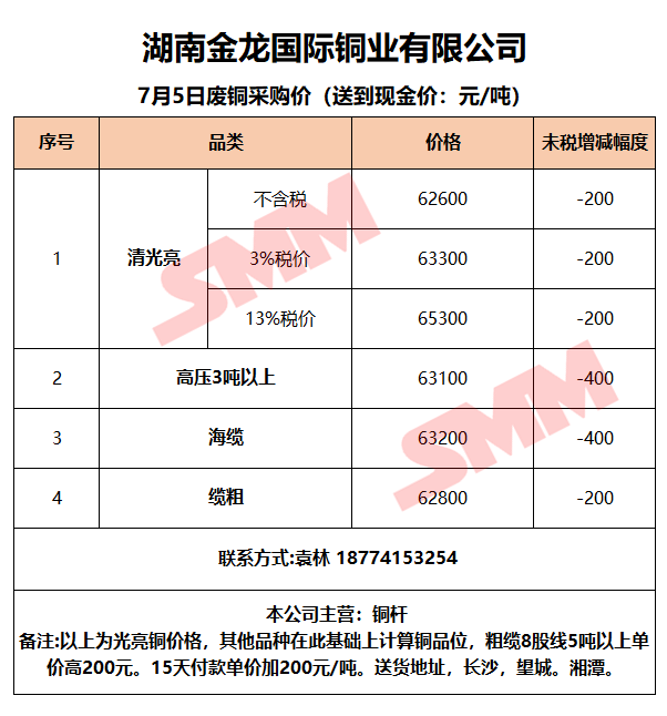 今日湖南金龙,废铜采购报价已更新,有货的朋友欢迎联系我们!