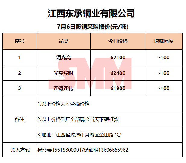 今日江西东承铜业/博升铜业 废铜采购报价已更新,有货的朋友欢迎联系我们!