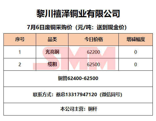 7月6日黎川禧泽铜业 废铜采购报价