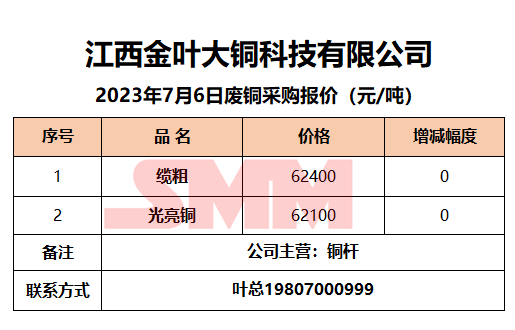 7月6日江西金叶大铜 废铜采购报价