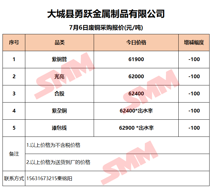 今日大城勇跃,废铜采购报价已更新,有货的朋友欢迎联系我们!