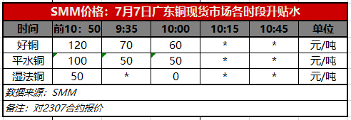 7月7日广东铜现货市场各时段升贴水(第二时段10:00)【SMM价格】