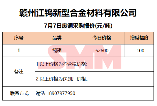 7月7日赣州江钨 废铜采购报价