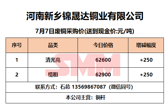 7月7日河南锦晟达 废铜采购报价