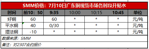 7月10日广东铜现货市场各时段升贴水(第一时段9:35)【SMM价格】