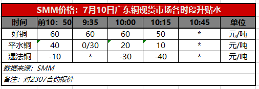 7月10日广东铜现货市场各时段升贴水(第三时段10:15)【SMM价格】