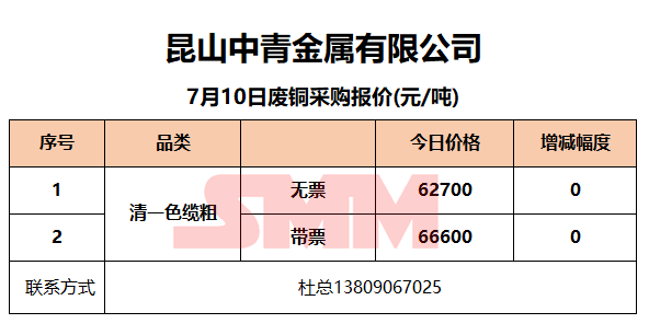 7月10日昆山中青 废铜采购报价