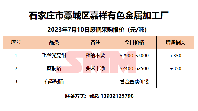 7月10日嘉祥有色金属 废铜采购报价