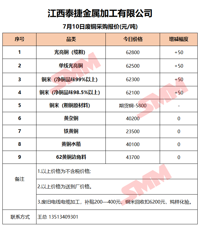 今日江西泰捷,废铜采购报价已更新,有货的朋友欢迎联系我们!
