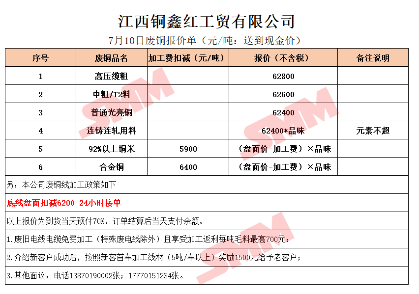 7月10日江西铜鑫红 废铜采购报价
