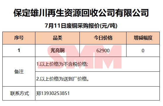 今日保定雄川,废铜采购报价已更新,有货的朋友欢迎联系我们!