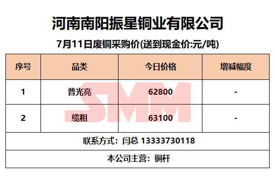 今日南阳振星,废铜采购报价已更新,有货的朋友欢迎联系我们!