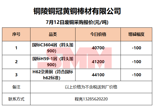 7月12日铜陵铜冠 废铜采购报价
