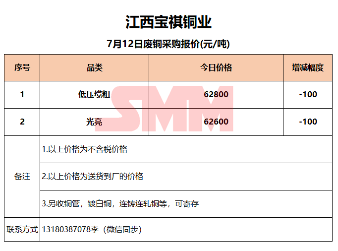 7月12日江西宝祺 废铜采购报价