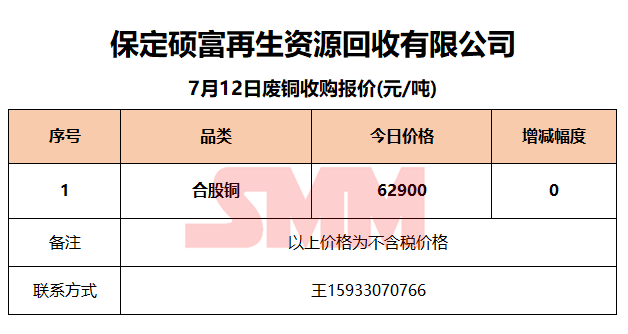 今日保定硕富 ,废铜收购报价已更新,有货的朋友欢迎联系我们!