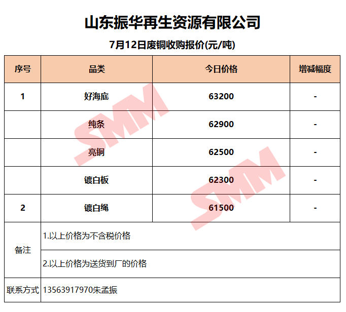 今日山东振华,废铜收购报价已更新,有货的朋友欢迎联系我们!