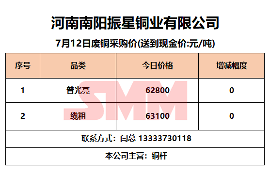 今日南阳振星,废铜采购报价已更新,有货的朋友欢迎联系我们!