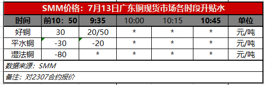 7月13日广东铜现货市场各时段升贴水(第一时段9:35)【SMM价格】