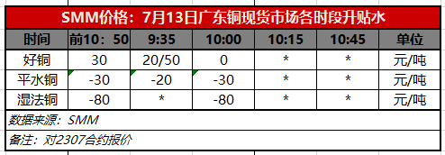7月13日广东铜现货市场各时段升贴水(第二时段10:00)【SMM价格】