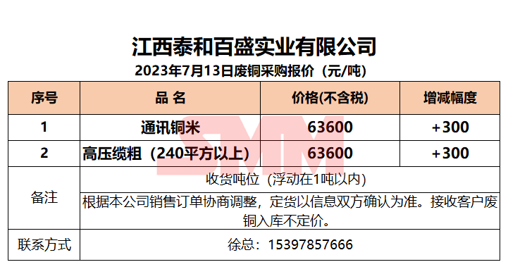 今日江西泰和百盛实业 ,废铜采购报价已更新,有货的朋友欢迎联系我们!