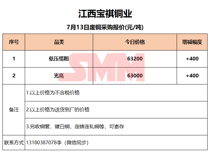 7月13日江西宝祺 废铜采购报价