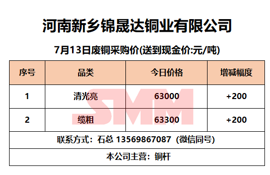 7月13日河南锦晟达 废铜采购报价