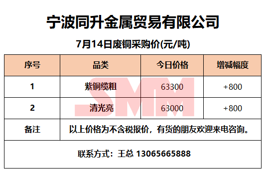 今日宁波同升金属,废铜采购报价已更新,有货的朋友欢迎联系我们!