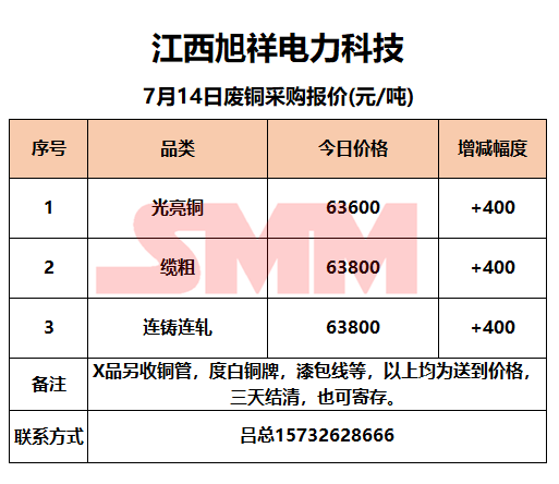 7月14日江西旭祥 废铜采购报价