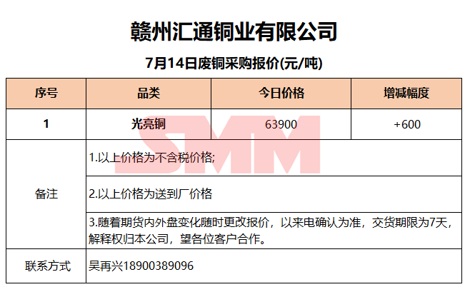 7月14日赣州汇通 废铜采购报价