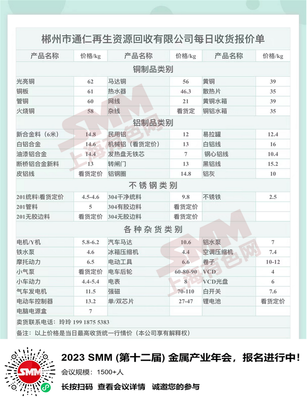 今日郴州市通仁再生资源回收有限公司 废金属收购报价已更新,有货的朋友欢迎联系我们!