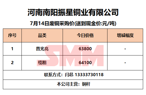 今日南阳振星,废铜采购报价已更新,有货的朋友欢迎联系我们!