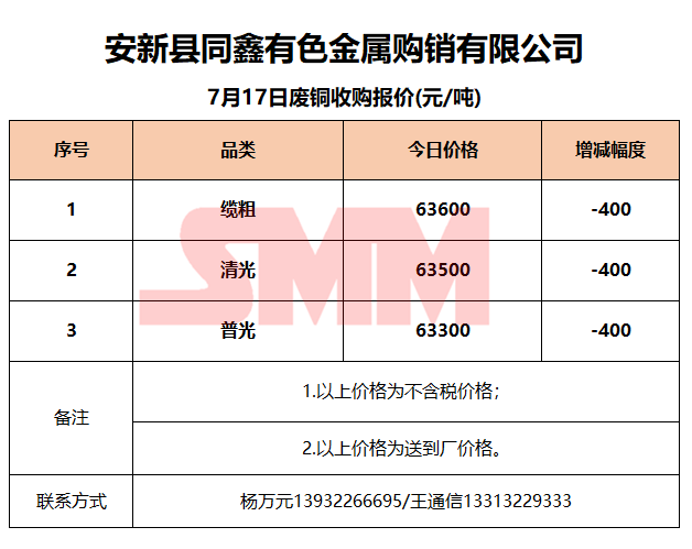 今日安新同鑫,废铜收购报价已更新,有货的朋友欢迎联系我们!
