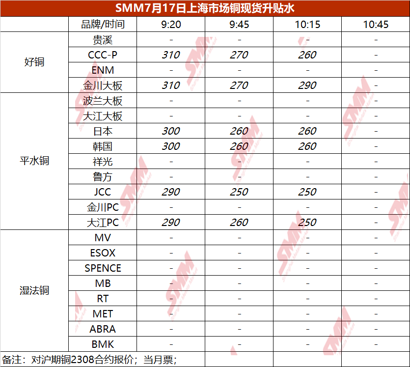 7月17日上海市场铜现货升贴水(第三时段)【SMM价格】