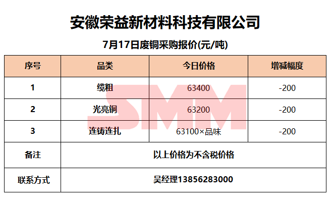 今日安徽荣益新材料,废铜采购报价已更新,有货的朋友欢迎联系我们!