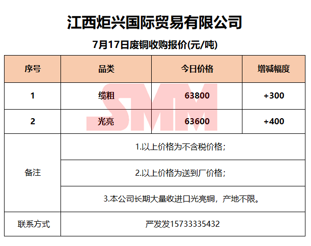 今日江西炬兴,废铜收购报价已更新,有货的朋友欢迎联系我们!