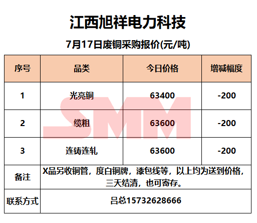今日江西旭祥,废铜采购报价已更新,有货的朋友欢迎联系我们!