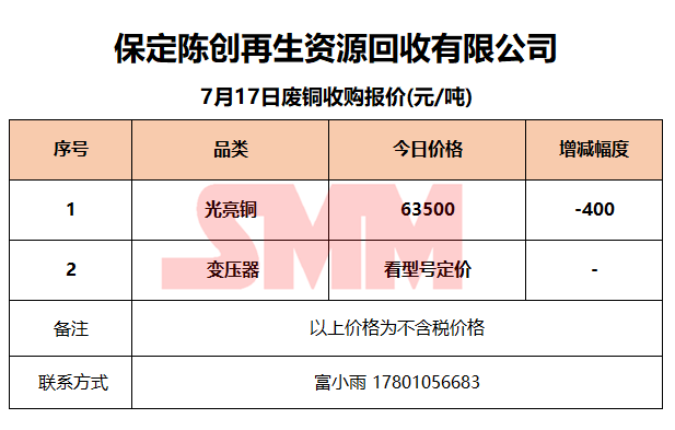 今日保定陈创再生资源,废金属收购报价已更新,有货的朋友欢迎联系我们!