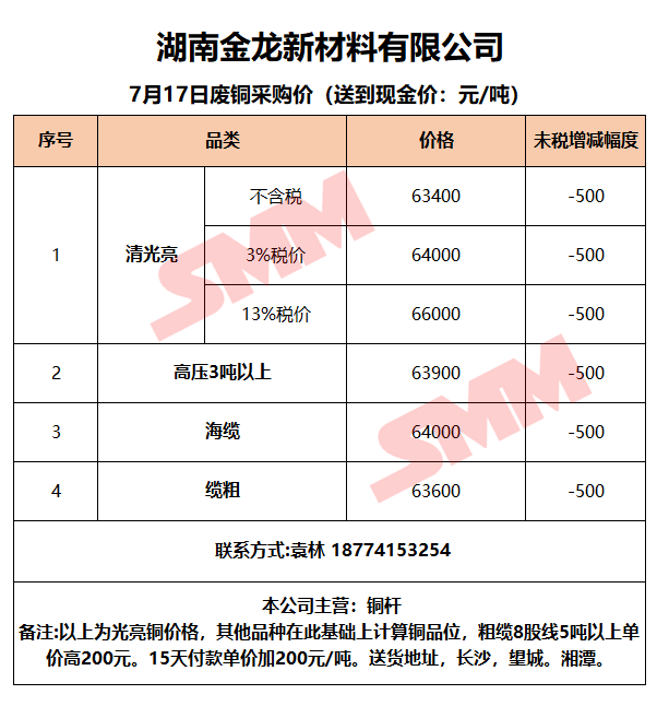 今日湖南金龙,废铜采购报价已更新,有货的朋友欢迎联系我们!