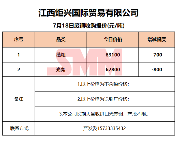 今日江西炬兴,废铜收购报价已更新,有货的朋友欢迎联系我们!
