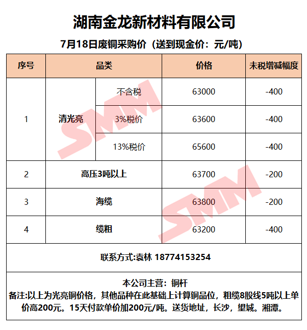 今日湖南金龙,废铜采购报价已更新,有货的朋友欢迎联系我们!